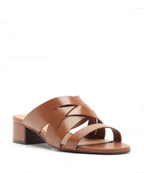 Tamanco Salto Bloco Tiras Cruzadas Marrom