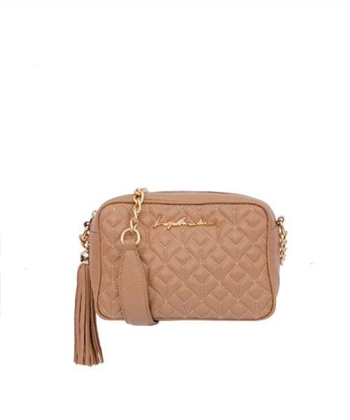 Bolsa Clássica em Couro Bege e Alça de Corrente Média