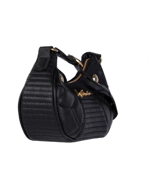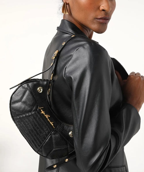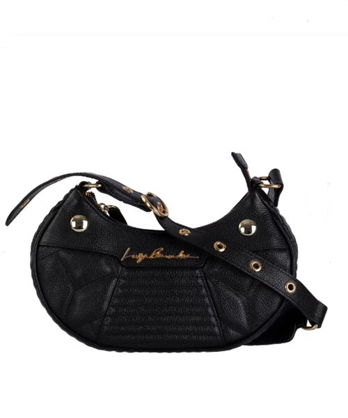 O estilo dessa bolsa Luiza Barcelos vem para esta temporada em tamanho pequeno, glamuroso e facinante: O novo modelo baguete com shape angular exclusivo cumpre bem estas funções, focando em materiais macios e monocromia. A bolsa pequena é produzida em couro no tom preto com superfície em matelassê, possui alça tira colo ajustável com detalhes de ilhós dourados, um compartimento interno, fechamento por zíper e aplicação frontal de tag da marca metalizada.