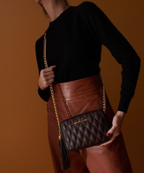 Ter acessórios aliados e assertivos para as produções do dia a dia é indispensável! A bolsa pequena Luiza Barcelos aposta neste inverno no couro no tom café coffee. O modelo possui painel frontal e traseiro com acabamento em matelassê, alça em corrente com área de toque em couro, fecho em zíper com barbicacho e possui um compartimento principal.