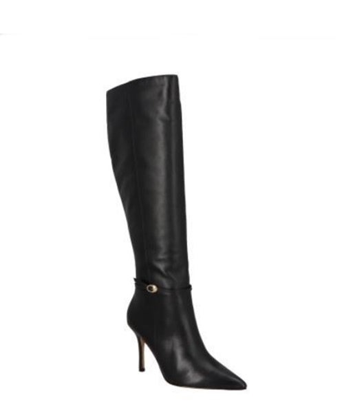 Bota de Cano Alto em Couro Preto e Salto Fino