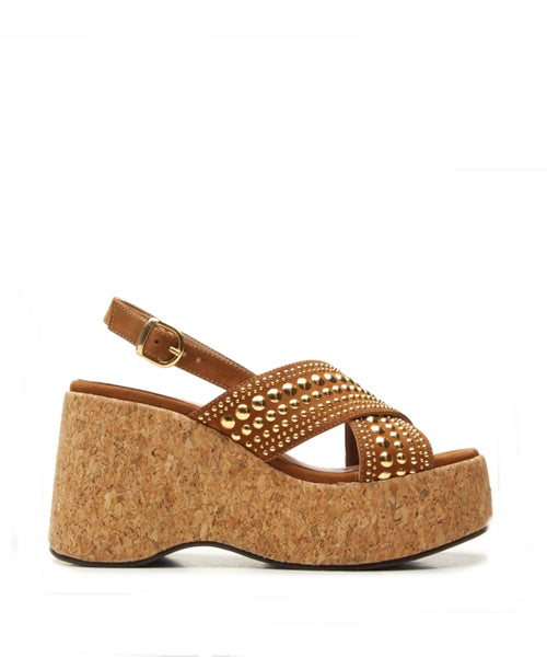 Sandália Plataforma Marrom Spikes Dourados - carregando