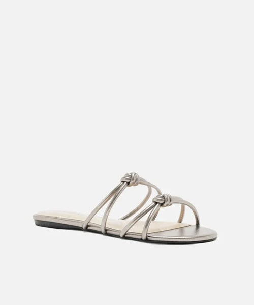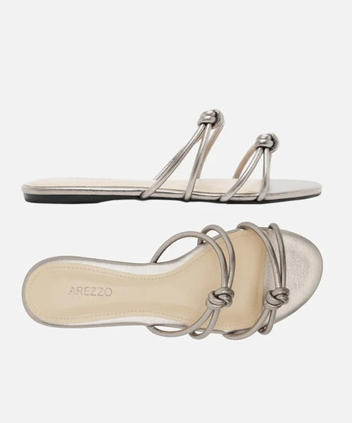 Rasteira Prata Velho Bico Redondo Tiras Nós -