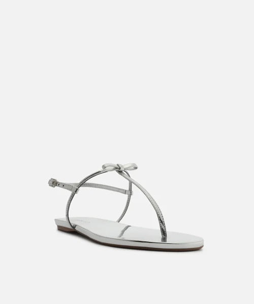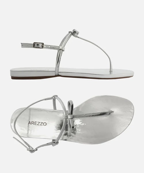 Sandália Rasteira Prata Verniz Tiras Slim Laço -