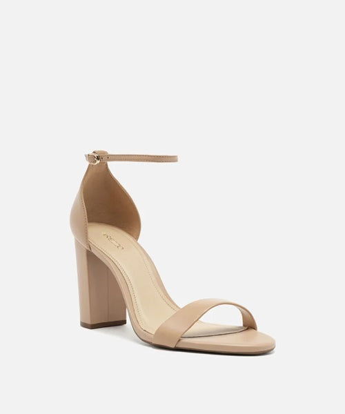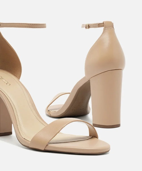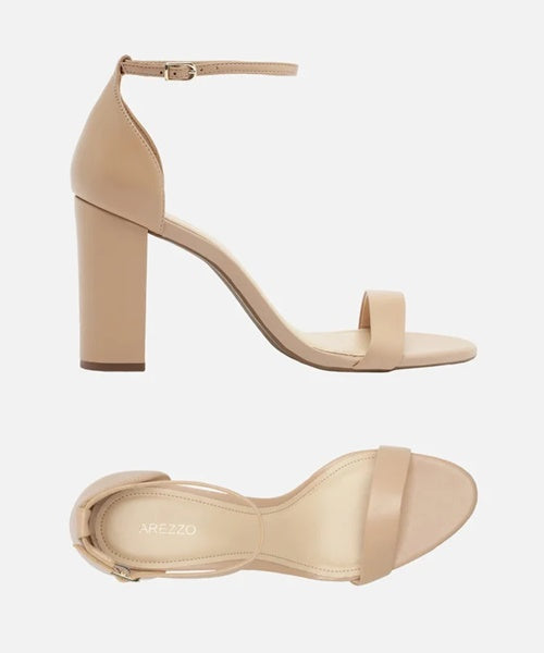 Sandália Nude Couro Salto Alto Bloco Isabelli