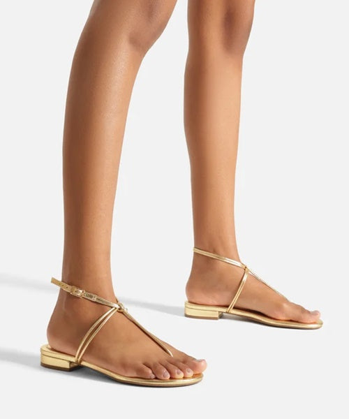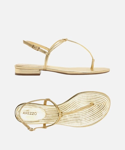 A sandália slim é delicada e versátil. O detalhe em enlace central adiciona charme ao visual, enquanto o acabamento metalizado ilumina as produções. Ideal para acompanhar looks de verão com elegância e leveza.