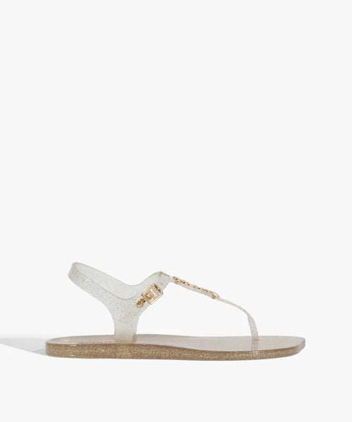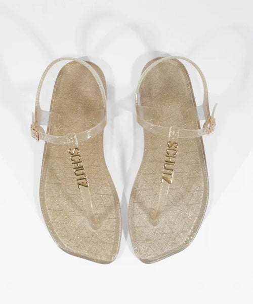 A Rasteira Jelly é a peça-chave que faltava no seu verão! Com um design minimalista, ela traz um toque de glamour discreto graças ao glitter delicadamente inserido no material.