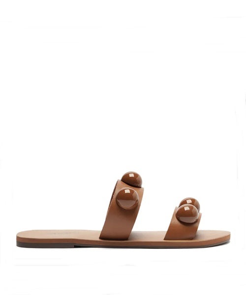 Rasteira Tiras Paralelas Esfera Pop Couro Marrom -
