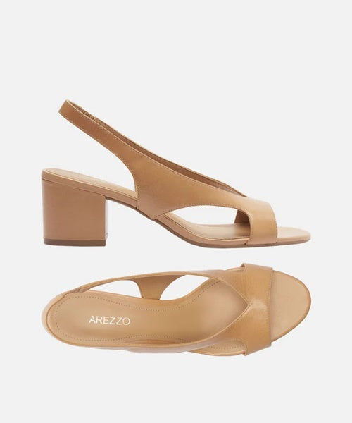 Sandália Nude Couro Bloco Tira Larga Slingback