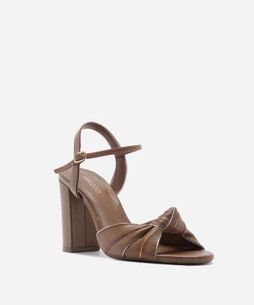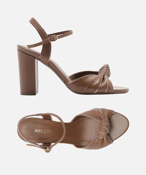 Sandália Marrom Couro Salto Alto Bloco Nó Color -