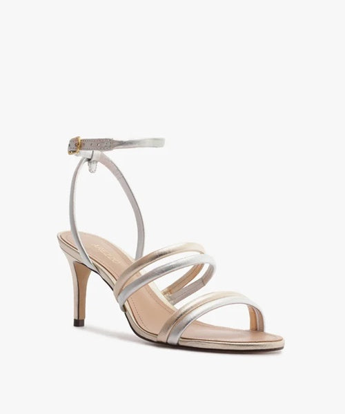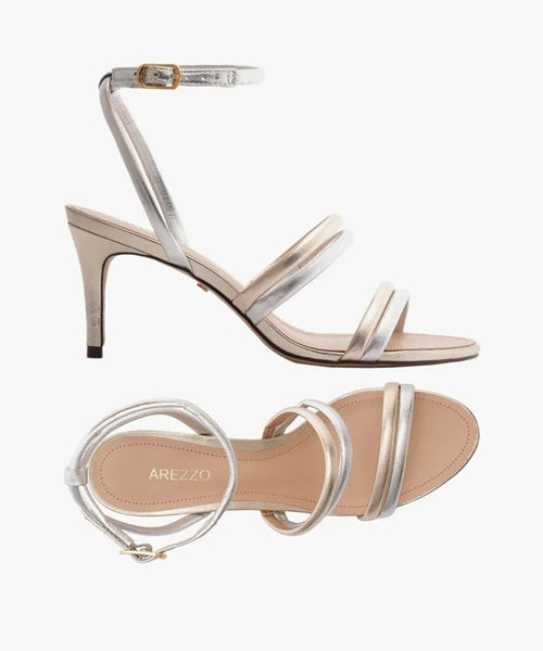 Descrição: Sandália Prateada Salto Fino Tiras Finas