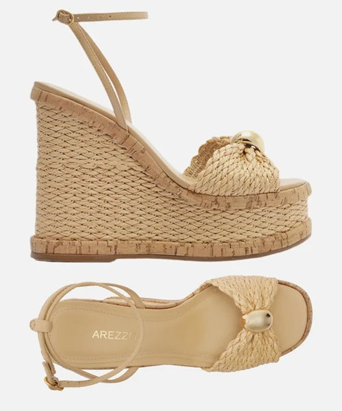 A sandália plataforma aposta no revestimento em palha e no detalhe do metal bold, traduzindo as tendências da temporada. Perfeita para um passeio, é garantia de produções despojadas e charmosas.