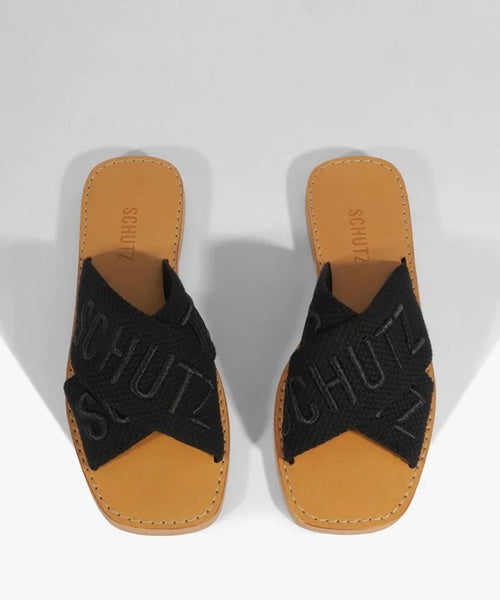 Cheio de personalidade, esse chinelo rasteira no estilo slide com tiras de gorgorão cruzadas e logo Schutz é a peça que faltava no seu guarda-roupa. O bico quadrado e a palmilha em cor natural trazem um toque de elegância, perfeito para um visual casual e autêntico.