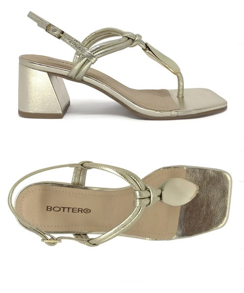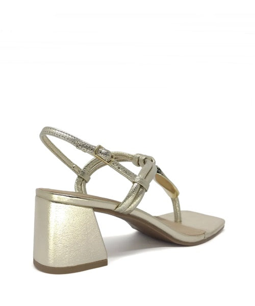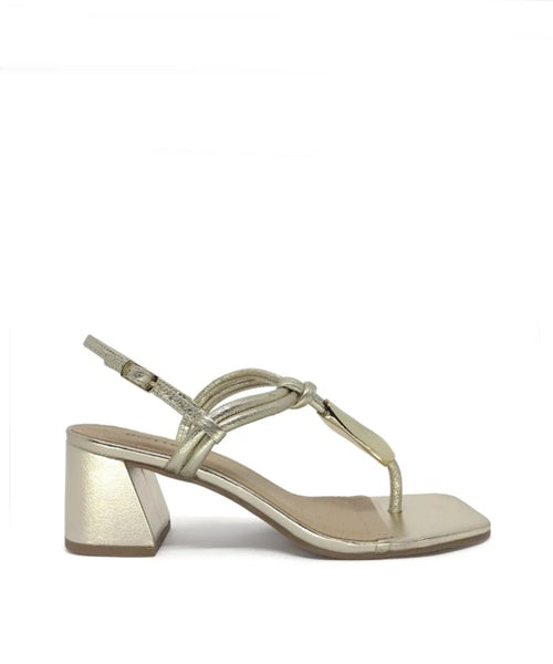 Sandália Salto Bloco Couro Metalizado Dourado -
