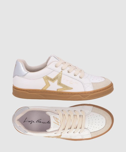 Tênis em Couro Osso e Off White com Detalhe em Estrela