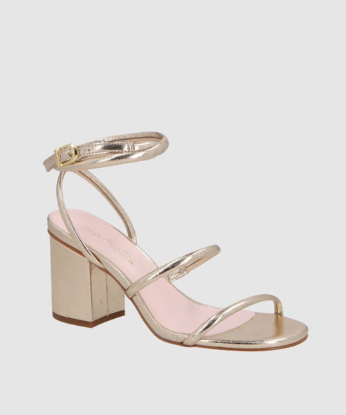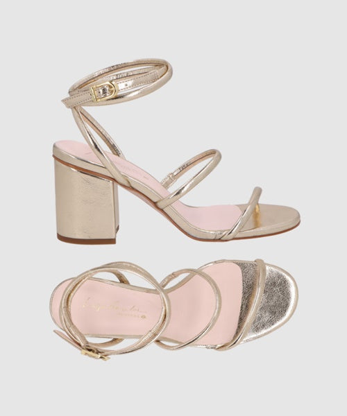 Sandália Salto Médio em Metalizado Dourado de Tiras Finas