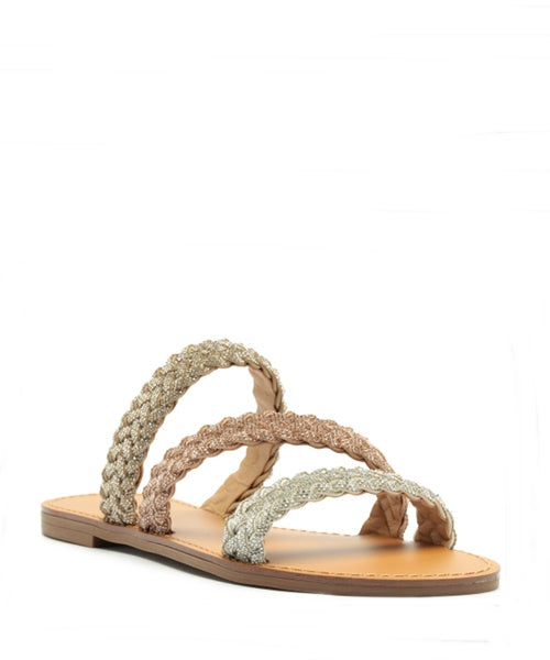 A rasteira tem tiras trançadas metalizadas e insere um toque charmoso nas produções do dia a dia. Vai do office ao passeio e combina com as mais diversas peças.