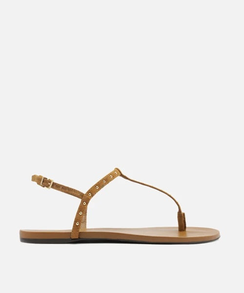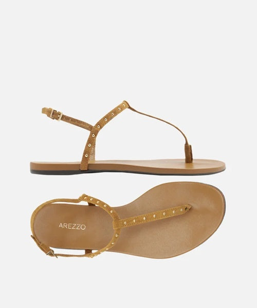 Sandália Rasteira Caramelo Camurça Slim Rebites -