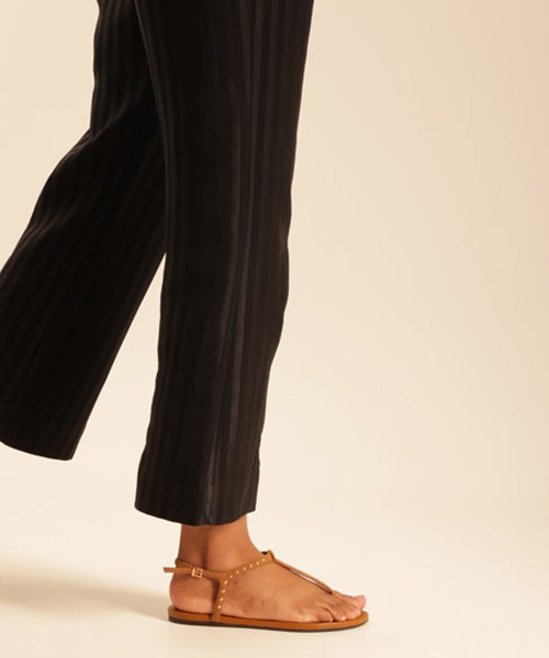 A rasteira vem atualizada em camurça e com rebites, traduzindo a tendência boho. A sandália slim vai do office ao passeio e combina com as mais diversas peças, do jeans à alfaiataria, criando um look despojado e comfy.