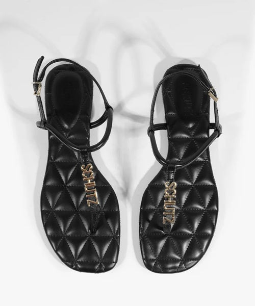 Sandália Rasteira Matelassê Couro Preta