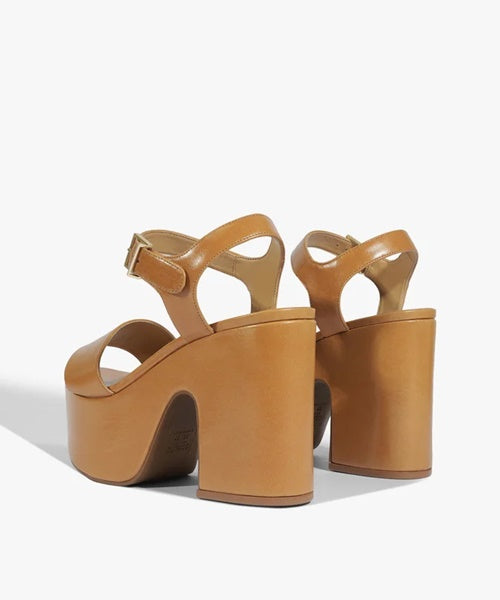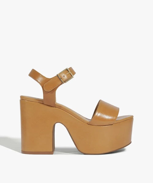 Sandália Plataforma Tuke Couro Marrom Claro -